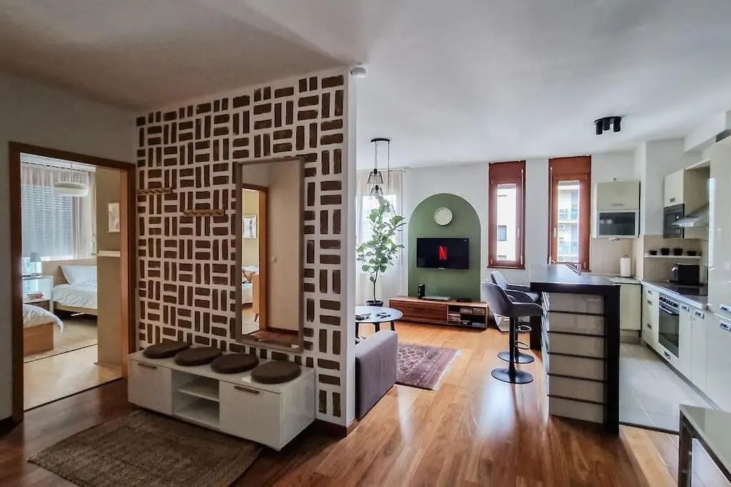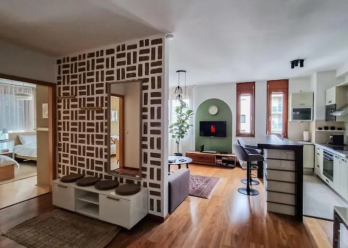 Das 70 m² große Apartment Stylish 2Br Home With Terrace & Garage Parking Budapest liegt 2 km von der Kettenbrücke und in 200 Meter Entfernung zur U-Bahnstation Lehel tér.